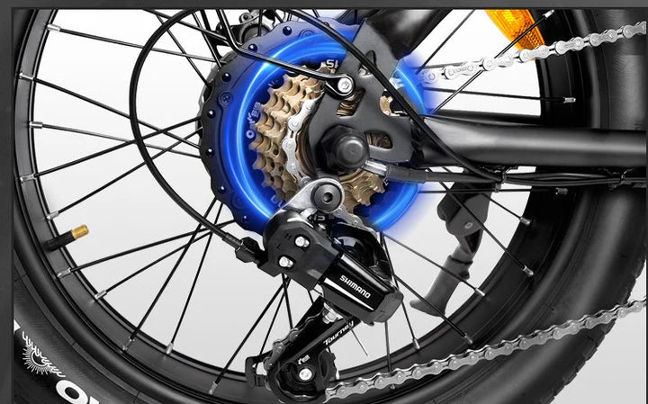 The 1000W upgraded brushless geared hub motor features a high-temperature resistant inner ring for improved heat dissipation, ensuring longer motor life. It’s designed to handle tough terrains with ease. The FOC (Field-Oriented Control) system optimizes motor performance in real-time, adjusting to your riding conditions and inputs, while monitoring ebike diagnostics for a smoother experience.